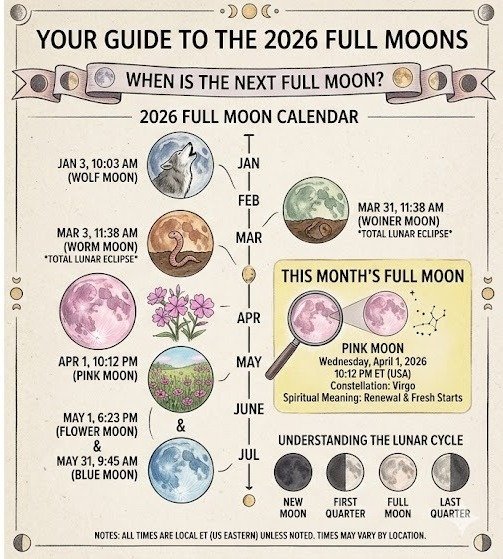 In astrology, full moons are believed to represent completion, clarity, and emotional intensity. Many people use this time for reflection, goal-setting, or spiritual practices. While not scientifically proven, these beliefs continue to attract interest worldwide.